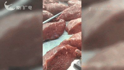 思明法院法官助理 陈杰:批发商阿亮他会根据母猪肉不同部位的肉质。来冒充不同类型的牛肉。像猪颈肉它的纹理松散,便用来冒充高价的雪花牛肉。猪排骨旁边的三层肉肥瘦相间,便用来冒充牛腩。猪的健子肉结实,便用来冒充牛腱子肉。