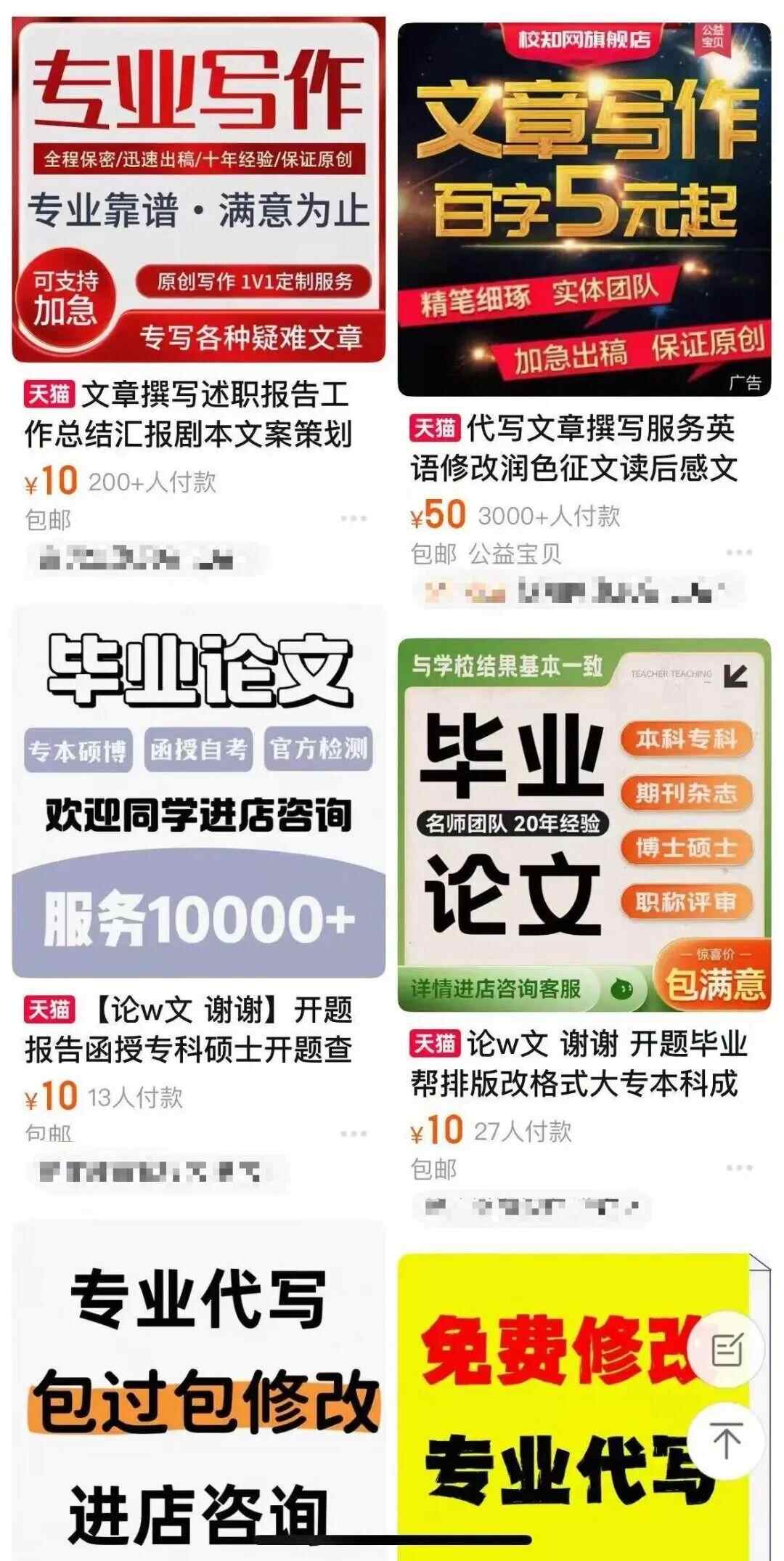 “代写论文”“论文工厂”灰色产业链的生长,一方面由于论文需求巨大、“唯论文”体系根深蒂固,另一方面也透露出对论文代写的监管存在严重空白,代写商家随处可见,有多种手段绕过平台监管,并利用社交媒体投放广告和引流。