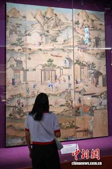 图为展出的“清乾隆广州手绘农耕商贸图外销壁纸”吸引观展者。中新社记者 陈骥旻 摄