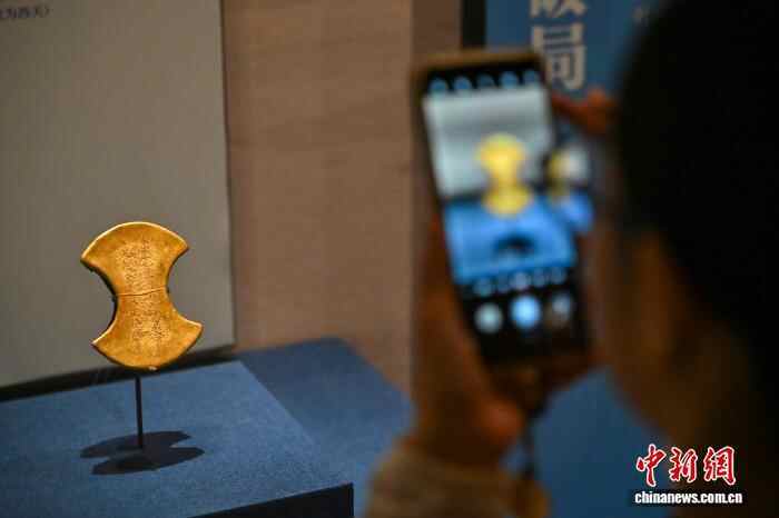 图为展出的“明金锭”吸引观展者。中新社记者 陈骥旻 摄