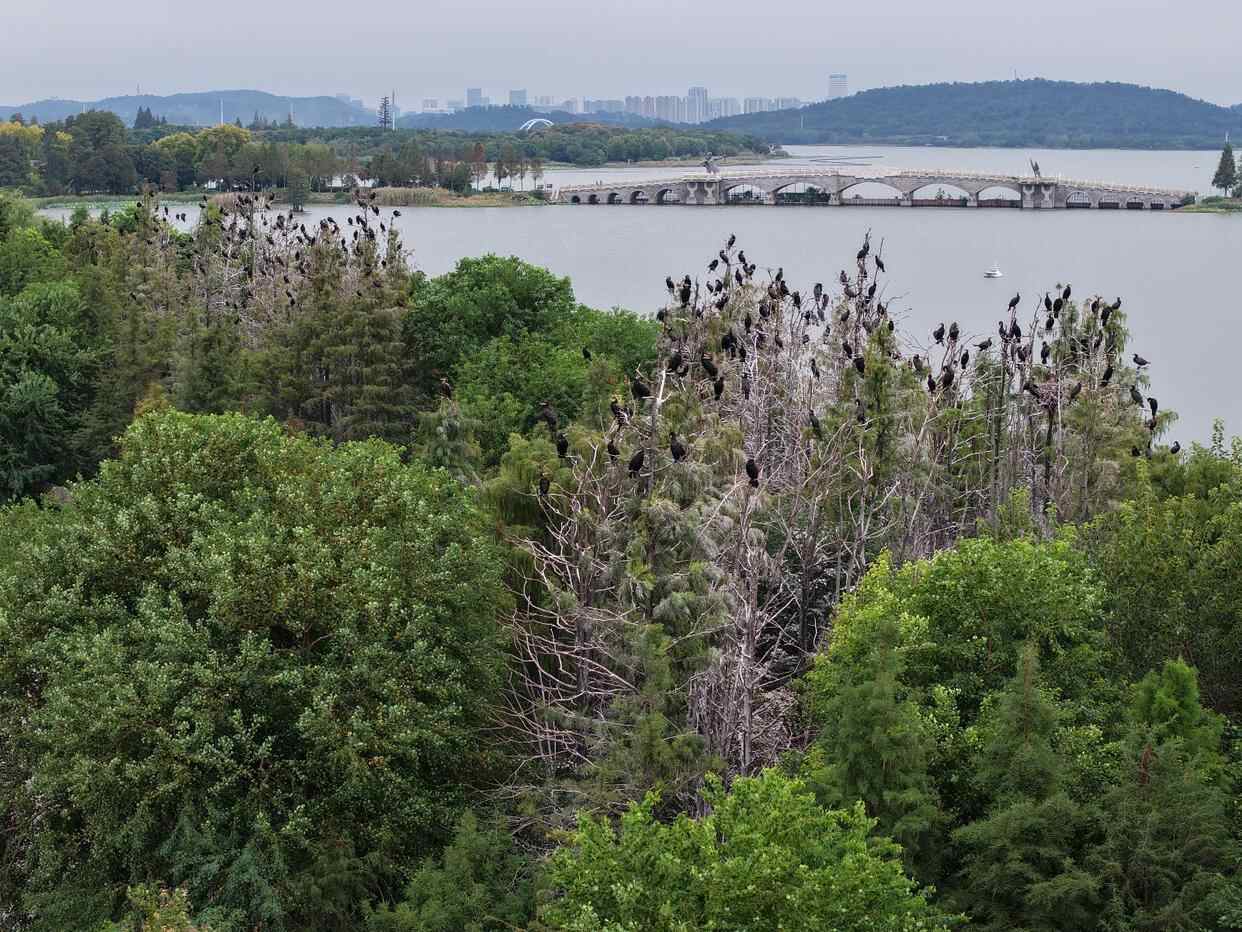 “鸟岛是东湖上一座独立的小岛,四面环水,至今未设登岛通道,远离人类活动干扰,为鸬鹚提供了安全、宁静的栖息天堂。”胡牡丹表示,整个东湖有丰富的食物资源,非常适合鸟类栖息。