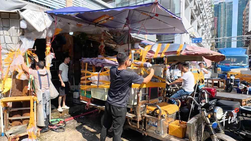 记者在现场看到,多宝街道有工作人员在现场协助市场做好批发档口搬迁工作,维护货物进出秩序,并向市民宣传粤恒丰、广聚、食中宝等其他市场主体仍有序经营。