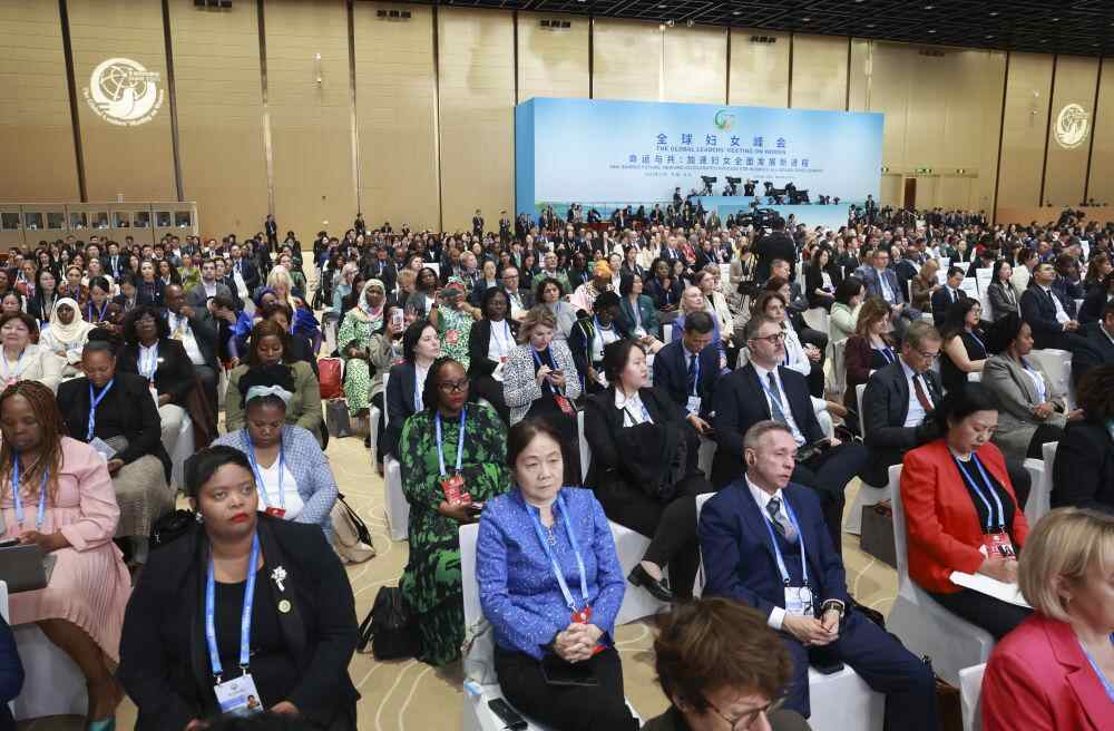 国家会议中心,不同肤色、语言和文化交融。全体会议会场外,“华韵承芳·非遗共赏”女性主题特展前,各国代表流连于精美中式作品间,感受东方文明之美;会场内,穹顶灯光如星河倾泻,精彩发言引发共情共鸣,掌声阵阵。