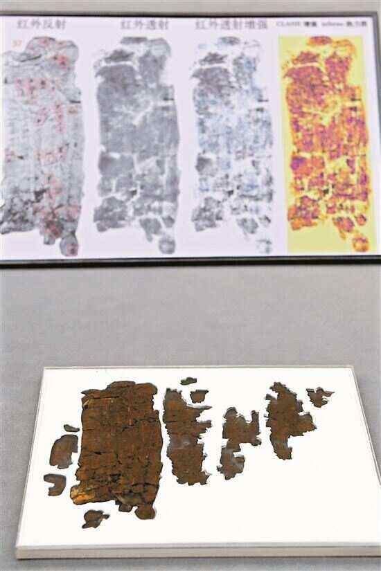 ▲这是10月13日在湖南省博物馆拍摄的部分长沙子弹库战国帛书。新华社发