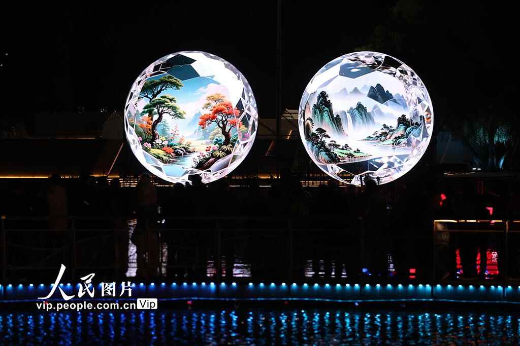 10月12日晚,游人在2025北京朝阳国际灯光消费季蓝色港湾观赏灯光秀。本届灯光消费季以“Together! We Shine! 一起闪耀”为年度主题,以亮马河文化经济带与奥林匹克中心区为两大核心阵地,联动三里屯、CBD、大望京、朝外UIC、高碑店等六大片区,推出演出、展览、市集等近百场文旅商体活动,实现“艺术+光影+商业”联动,全方位展现“潮朝阳、夜精彩、越夜越精彩”的独特魅力。活动将持续至10月底。陈晓根摄(人民图片网)