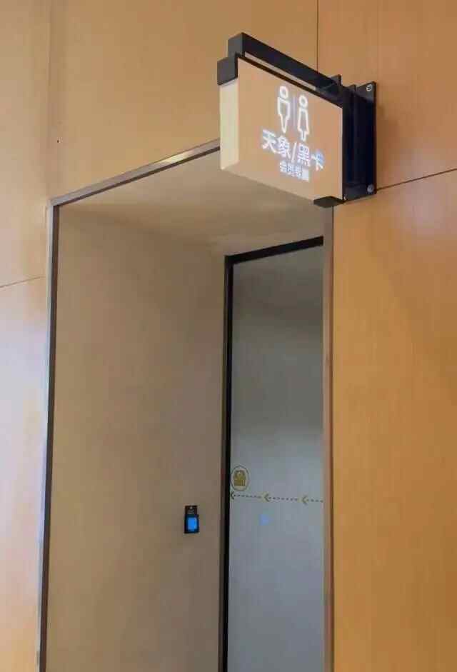 该网友发布的照片显示,该厕所进出通道设有智能玻璃门禁系统,玻璃门上注明“天象/黑卡会员专属”,门侧配有扫码设备。