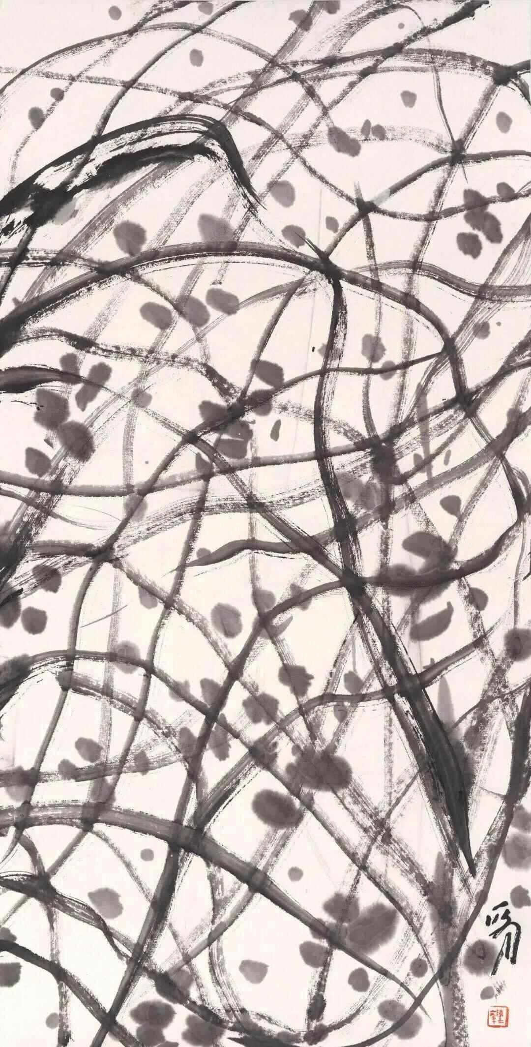 宋陆京与潘小明:心象叙事与语言本体的分野。 宋陆京的构图服务于其“心象”的诗意叙事,画面是完整的、和谐的、可供品读的。而潘小明的构图则服务于其“语言实验”,画面是开放的、过程的、可供分析的。前者引导观众进入一个诗意的世界,后者则邀请观众审视水墨语言本身的生成逻辑。
