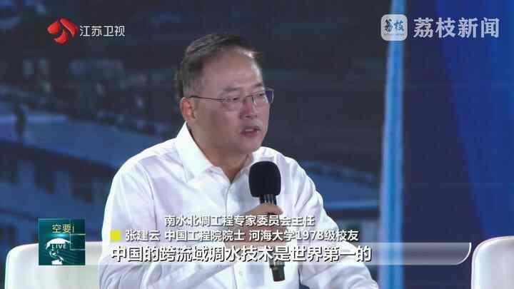 南水北调工程专家委员会主任、中国工程院院士、河海大学1978级校友张建云说:“水要抬40多米,靠的是我国自主研发的目前世界上最大的、技术上最先进的13级泵站,就好像修了13层的电梯,让长江水一路北上。到目前为止,南水北调工程已经从长江调水800多亿立方米到北方,让北方1.8亿多人喝上了好水。我们可以自豪地讲,中国的跨流域调水技术是世界第一的。”