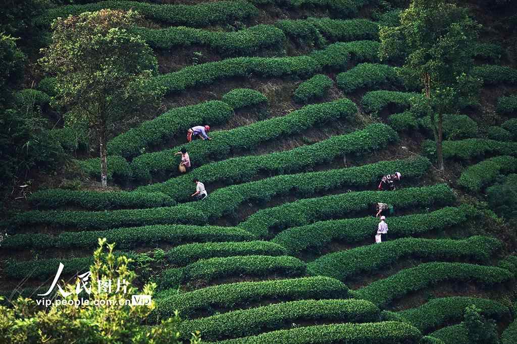 2025年10月8日是寒露节气,广西贺州市昭平县20多万亩茶园进入最后一批秋茶采摘期,众多茶农上山赶采“寒露茶”。喻湘泉摄(人民图片网)