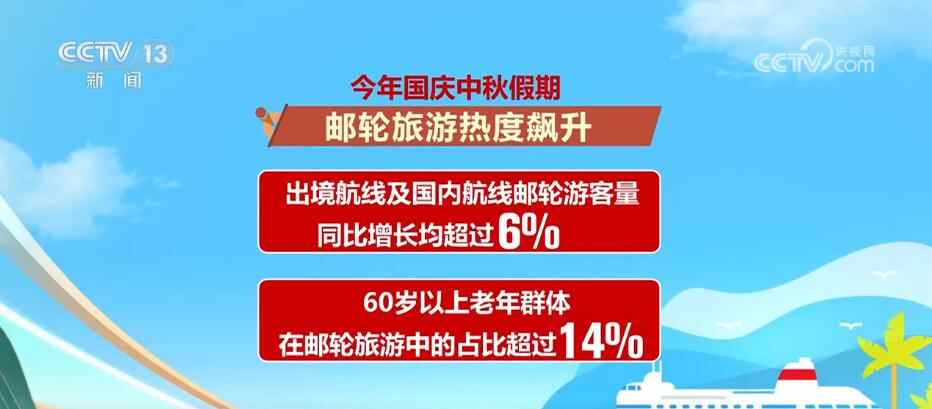 大数据还发现,今年国庆中秋假期,邮轮旅游热度飙升。出境航线及国内航线邮轮游客量同比增长均超过6%,60岁以上老年群体在邮轮旅游中的占比超过14%。
