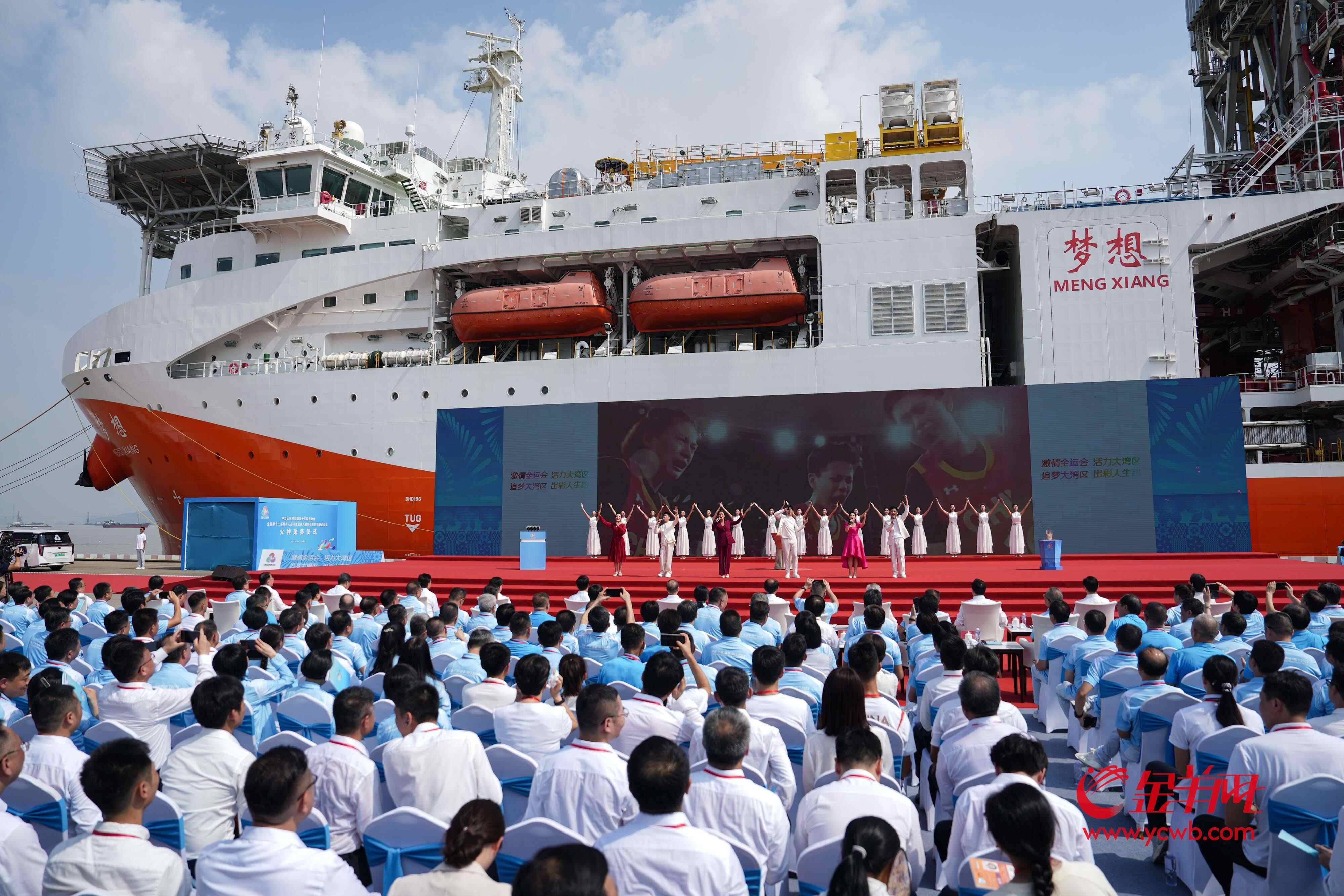 距离第十五届全国运动会开幕还有31天,今天(10月9日)上午,在广州南沙科考码头的“梦想”号大洋钻探船前,第十五届全国运动会和全国第十二届残疾人运动会暨第九届特殊奥林匹克运动会火种采集仪式举行。