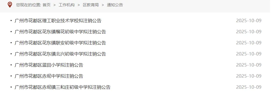 10月9日上午,花都区教育局发布了多所中小学的拟注销公告。羊城晚报记者随后从该局获悉,此次学校调整并非简单终止办学,而是区域教育资源配置优化的改革探索,旨在通过撤并农村小规模学校、整合优质教育资源等方式,推动教育优质均衡、更高质量发展。