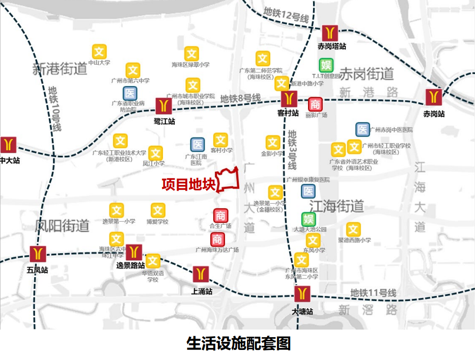 该地块位于海珠区中部核心区,地理位置优越,紧邻城市南北主干道广州大道南,可快速衔接新光快速、环城高速等重要交通动脉,便捷通达珠江新城、广州国际金融城等繁华地带。同时,地块周边地铁站点密集、公交线路众多,公共交通覆盖全面,交通优势显著。