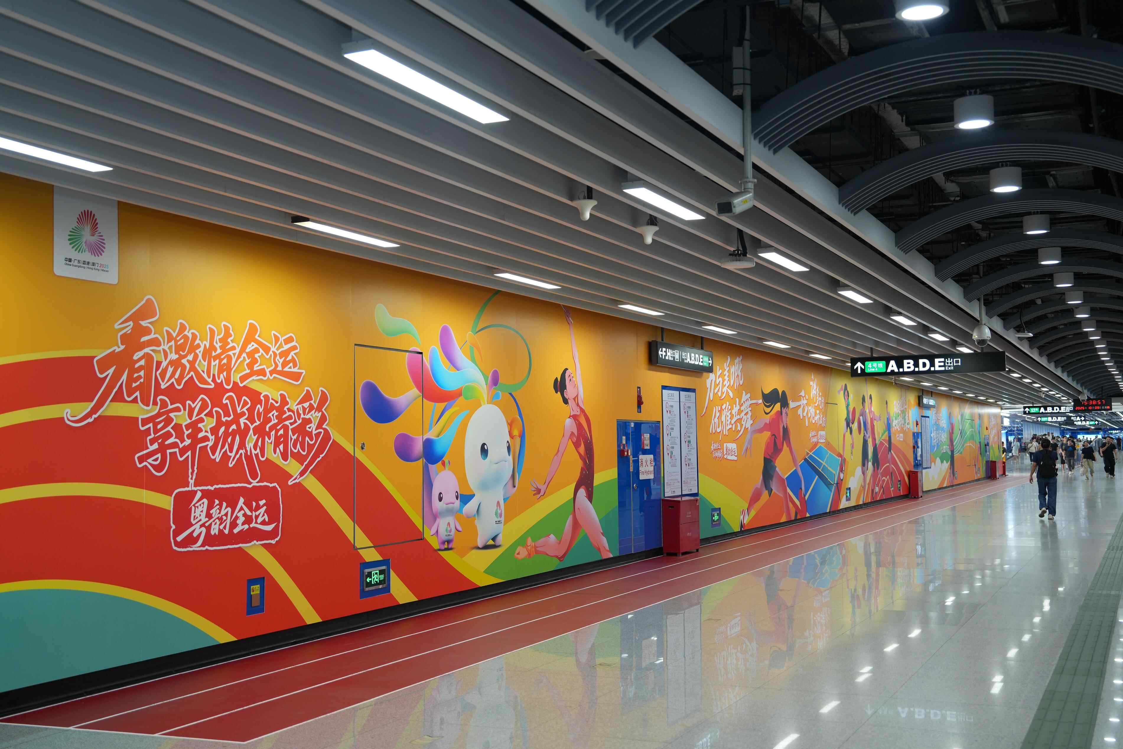 记者了解到,广州地铁还在地铁广州东站三号线、十一号线与一号线的换乘通道两侧,同步打造“羊城八景”“食在广州”长卷,向来往的游客展示着广州的自然风光与美食文化。同时,体育中心站出入口营造了全运氛围,让每一位前往天河体育中心观看比赛的观众,在地铁站就能感受到全运会的热烈气息。