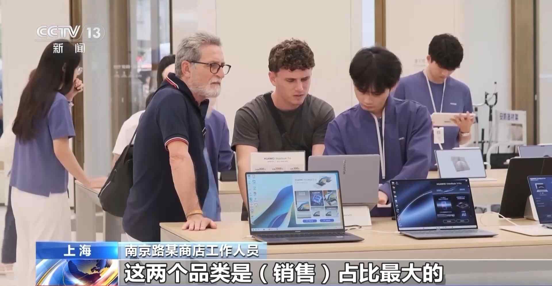 南京路某商店工作人员:外国顾客特别喜欢音频类和智能手表类产品,这两个品类是销售占比最大的。