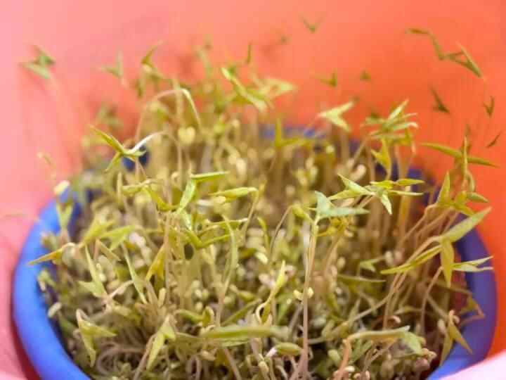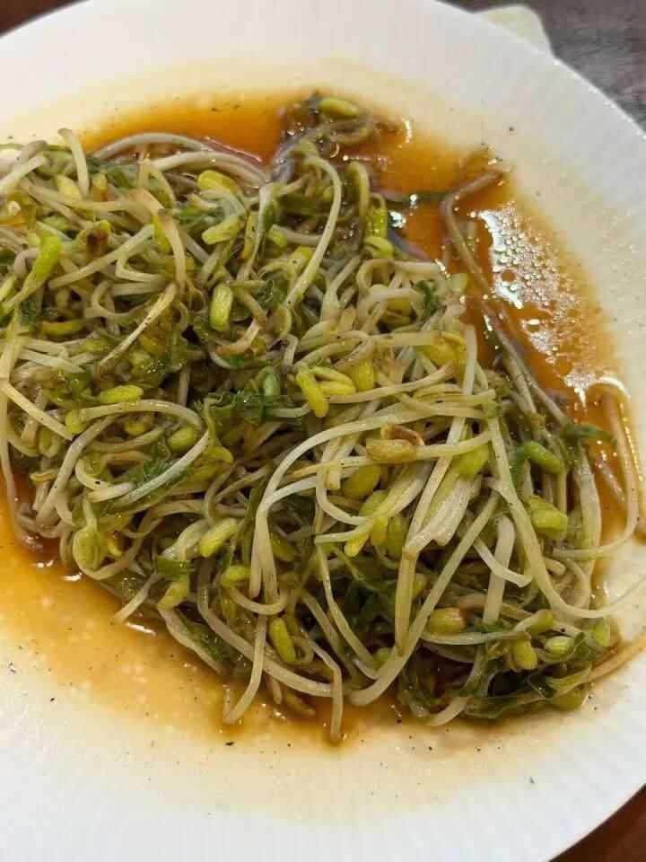 “最搞笑的是,最后一天我们又回诸暨接上老人回杭,一家五口本来一辆车坐得刚刚好,现在还要给这个桶腾个位置,搞得我们坐得很拥挤。晚上到家,我们就把豆芽给炒了,绿豆这一生也值了。但是这回一下种太多了,根本吃不完,现在家里还有一桶。”