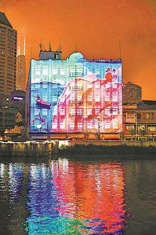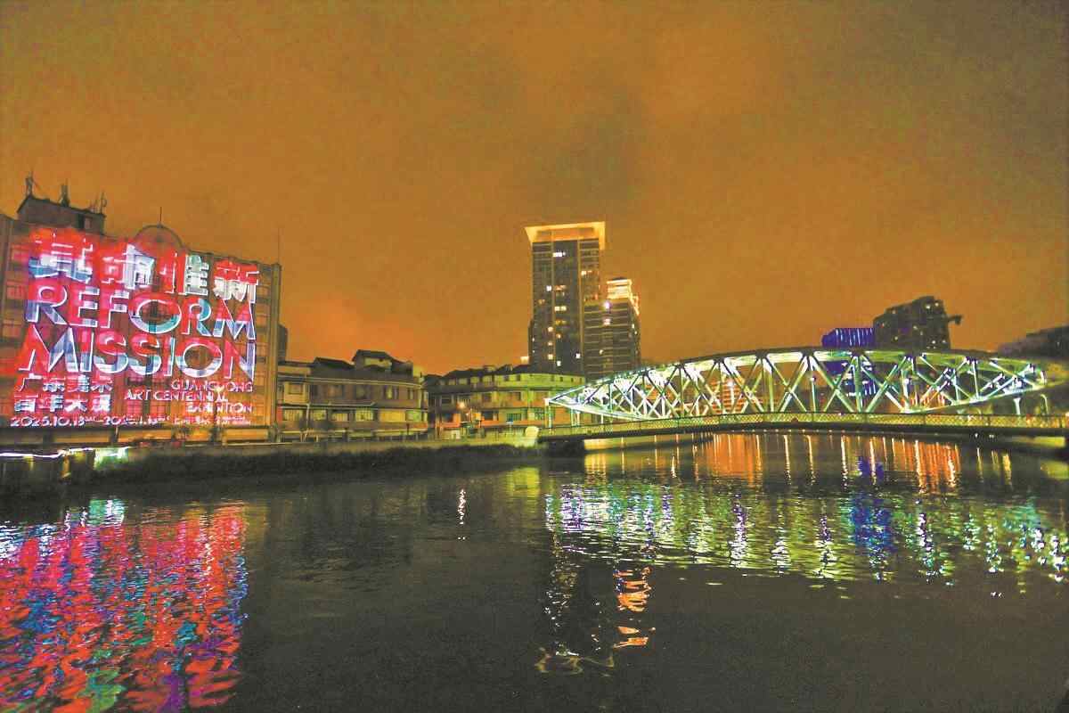 作为“其命惟新——广东美术百年大展”预热活动之一,苏州河畔的“闪亮·上海 静安光影季”在国庆中秋长假期间的每天18时至22时,上演了广东美术名家名作光影秀,吸引众多市民、游客驻足观看。