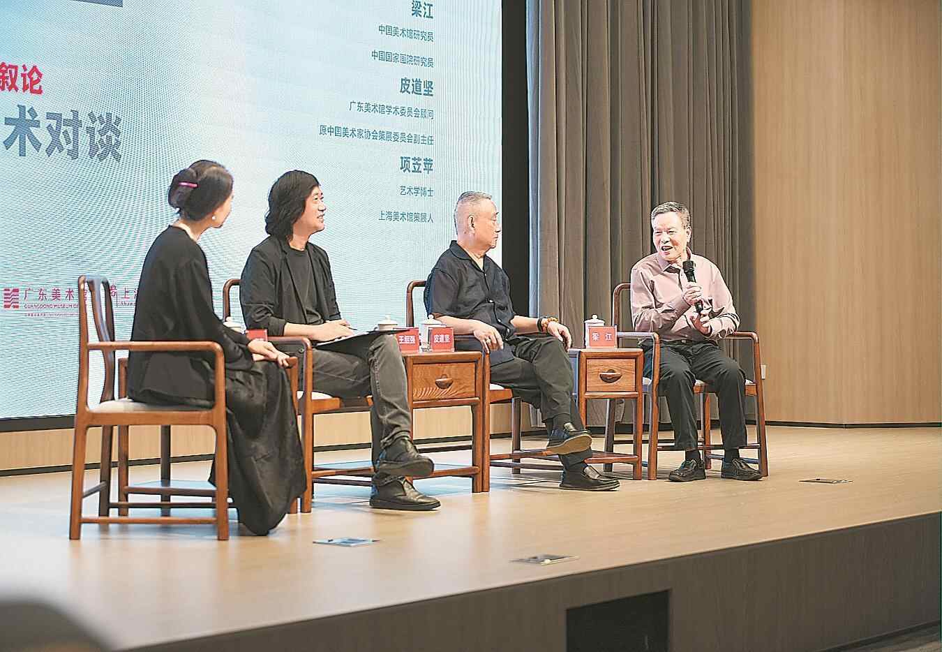 本次活动由广东美术馆馆长、广东美术百年大展(上海站)总策展人王绍强担任学术主持,中国美术馆研究员梁江作主题演讲,中国美术家协会策展委员会原副主任皮道坚、上海美术馆策展人项苙苹等参与对谈。