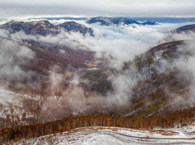 10月7日,宁夏银川,工作人员在贺兰山东麓一酿酒葡萄种植基采收葡萄。(无人机照片)中新社记者 于晶 摄