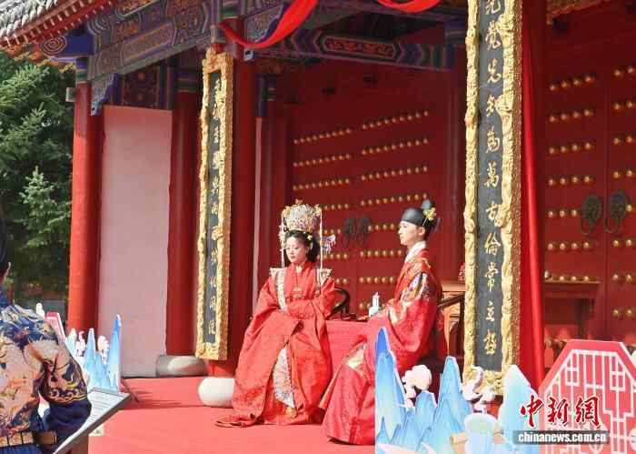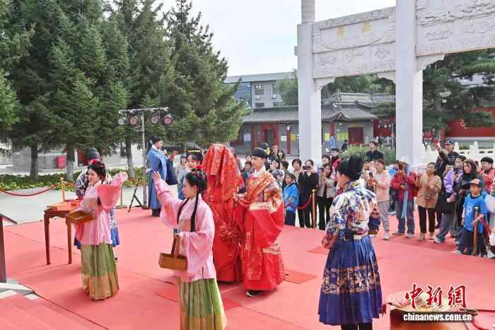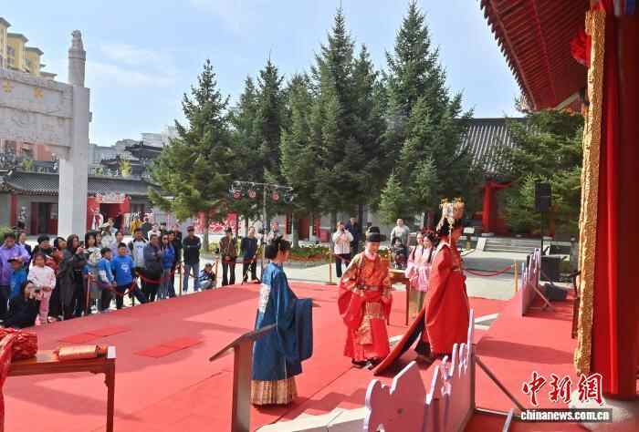 10月7日,吉林长春文庙举行了一场明制汉婚沉浸式展演。汉服爱好者依次呈现奠雁、同牢、合卺等传统礼仪,生动还原明代婚俗。现场通过流程讲解与道具展示,解读礼仪背后古人对婚姻与美好生活的寄愿。中新社记者 张瑶 摄