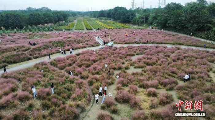 图为盛开的粉黛乱子草。(无人机照片)韩金雨 摄