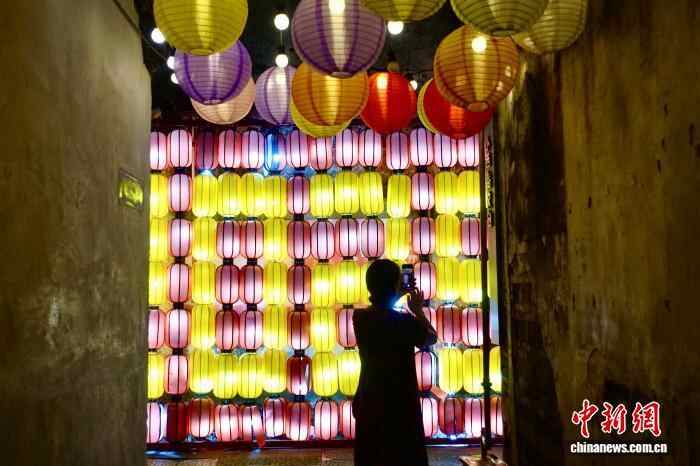 10月7日,小西街的彩灯吸引游客驻足拍照。中新社记者 钱晨菲 摄