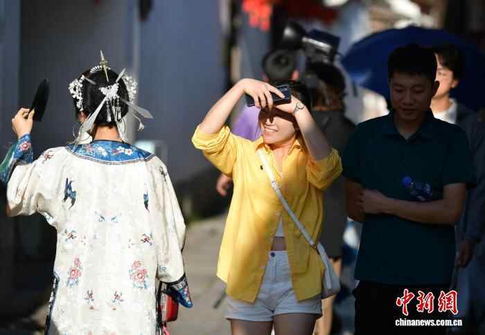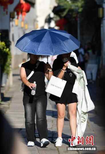 10月7日,福州街头出行的民众。国庆中秋假期,受副热带高压控制,福州持续晴热高温天气,热力十足。中新社记者 张斌 摄