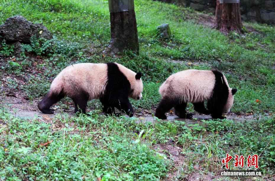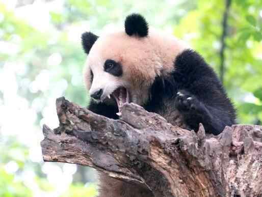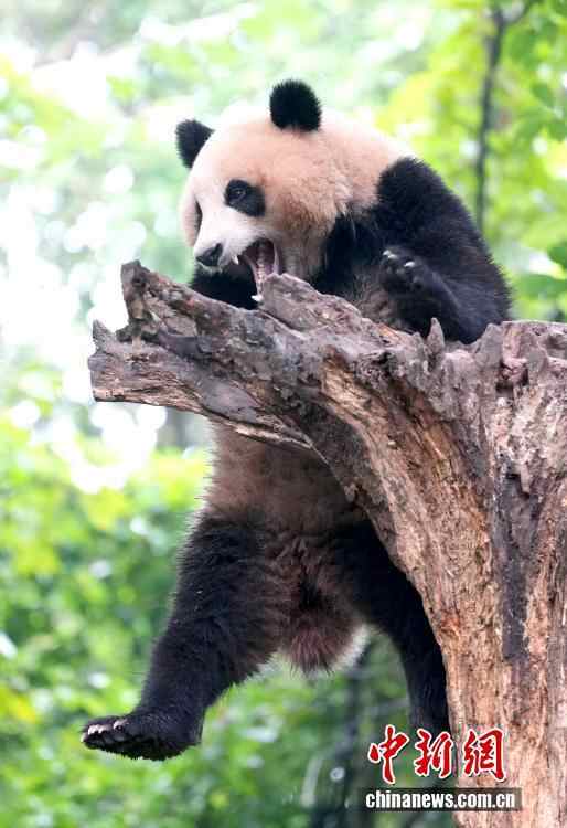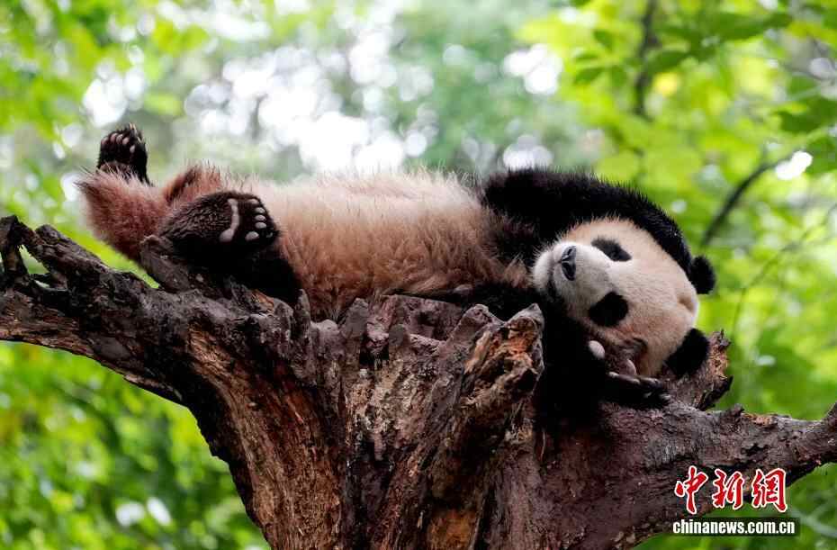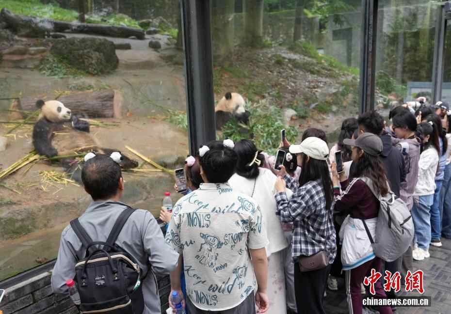 四川都江堰:大熊猫撒欢卖萌吸引游客