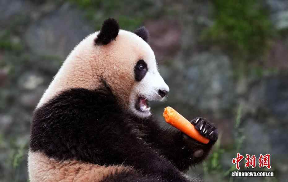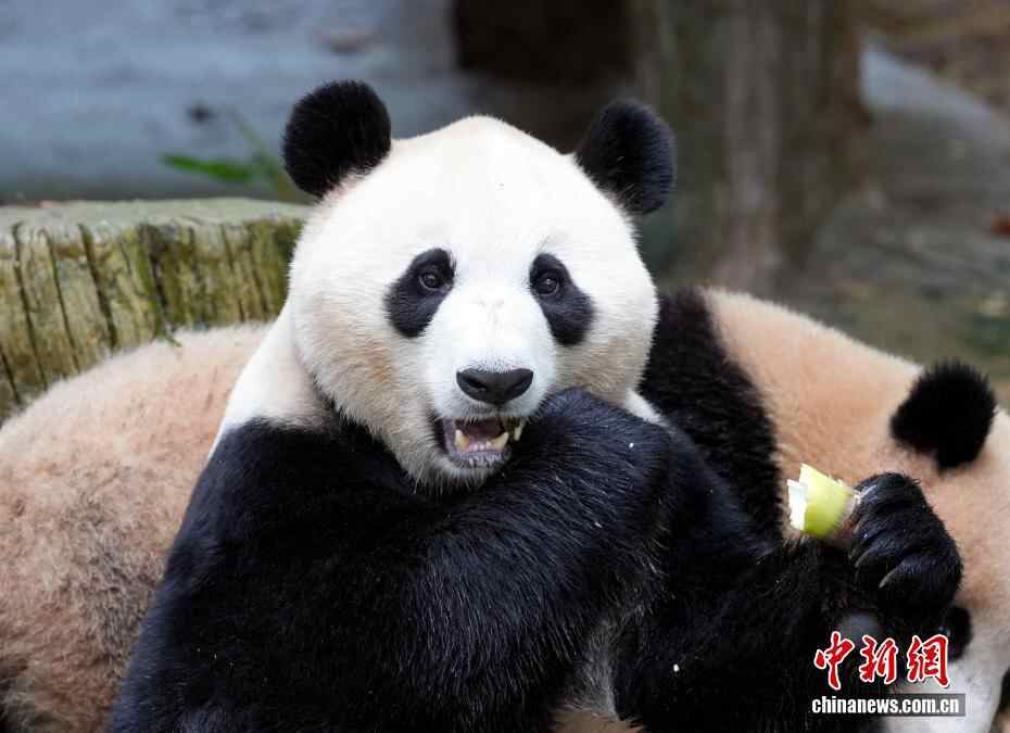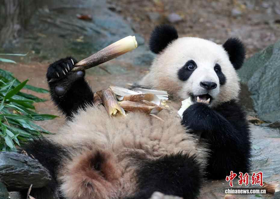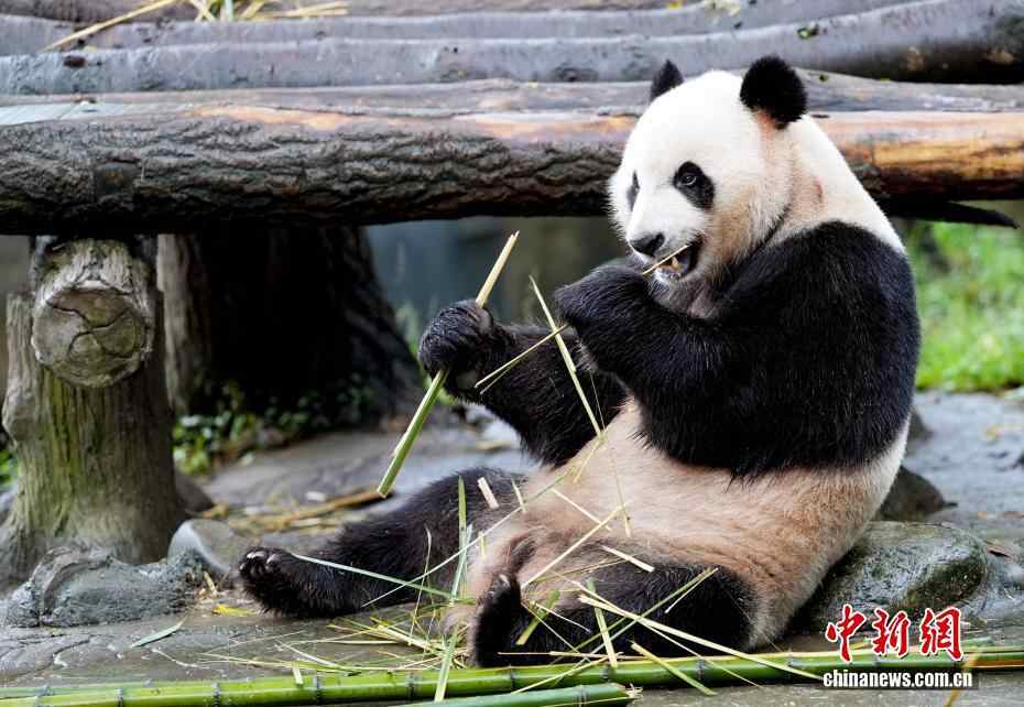 10月7日,四川都江堰,享用美食的大熊猫。当日是国庆假期第七天,众多市民、游客来到中国大熊猫保护研究中心都江堰基地参观,都江堰基地里的大熊猫撒欢卖萌让游客开心不已。