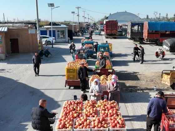 10月7日,菜农将采摘好的西红柿送往宁夏银川市金凤区良田镇和顺新村果蔬仓储分拣中心。(无人机照片)中新社记者 于晶 摄