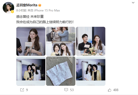 5月25日凌晨,孟羽童晒与董明珠合照,并配文:“感念曾经,未来珍重。我会在成为自己的路上继续努力前行的!”