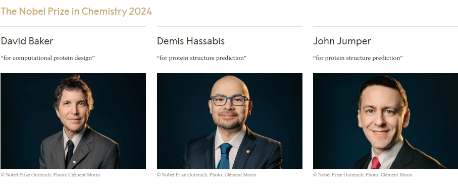 2024年的诺贝尔化学奖授予美国华盛顿大学西雅图分校的戴维·贝克,以及谷歌旗下“深层思维”公司的德米斯·哈萨比斯和约翰·江珀,以表彰他们破解了蛋白质神奇结构的密码。
