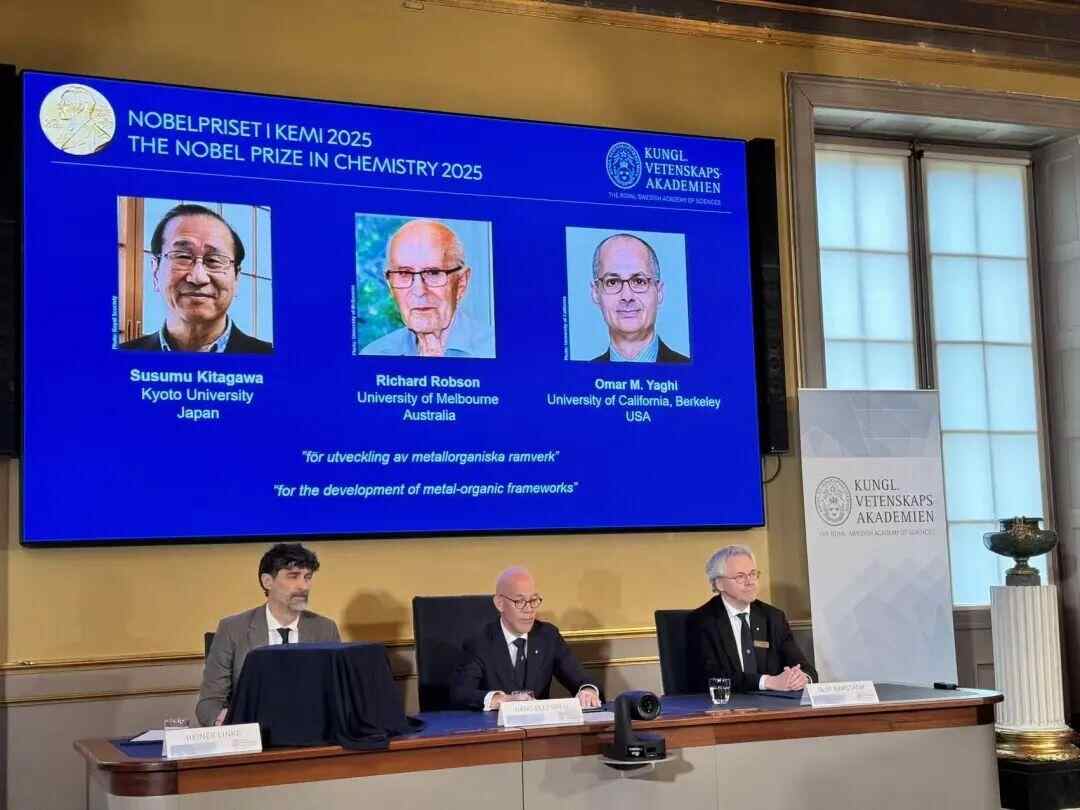 当地时间10月8日,瑞典皇家科学院决定将2025年诺贝尔化学奖授予北川进(Susumu Kitagawa)、理查德·罗布森(Richard Robson)以及奥马尔·M·亚吉(Omar M. Yaghi)三位科学家,以表彰其在金属有机骨架开发领域的贡献。获奖者将平分1100万瑞典克朗(约合836万元人民币)奖金。