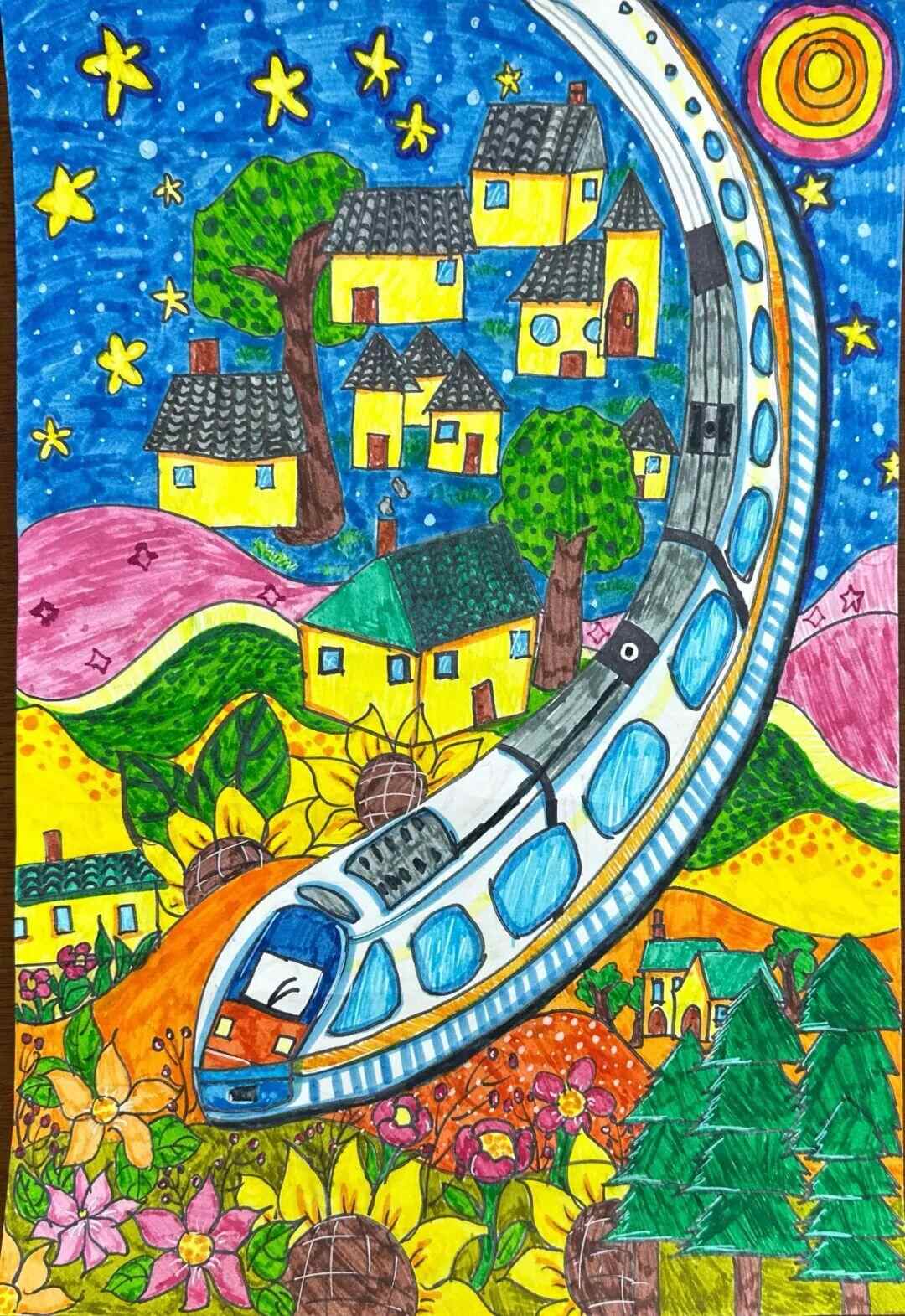 我是在边陲小城——东宁的姥姥家长大的,回佳木斯的爷爷家就要汽车转火车。小时候妈妈带我坐火车的记忆犹如潺潺的溪流在我的心间蜿蜒伸长。绿皮火车“哐当哐当”,是我童年旅程的独特配乐。车窗外,东北大地像打翻的颜料盘。春日,刚抽芽的柳枝在风里荡秋千,和火车玩着捉迷藏;盛夏,大片金黄麦浪涌起,似给大地铺了绒毯,火车驶过,麦浪分开又合拢,像在给钢轨行注目礼;深秋,五花山打翻调色盘,红的枫、黄的杨、褐的柞,在车窗上流淌成画;寒冬,银装素裹的世界里,钢轨是条黑色的琴弦,车轮与钢轨撞击,似在弹奏冰天雪地的歌谣。