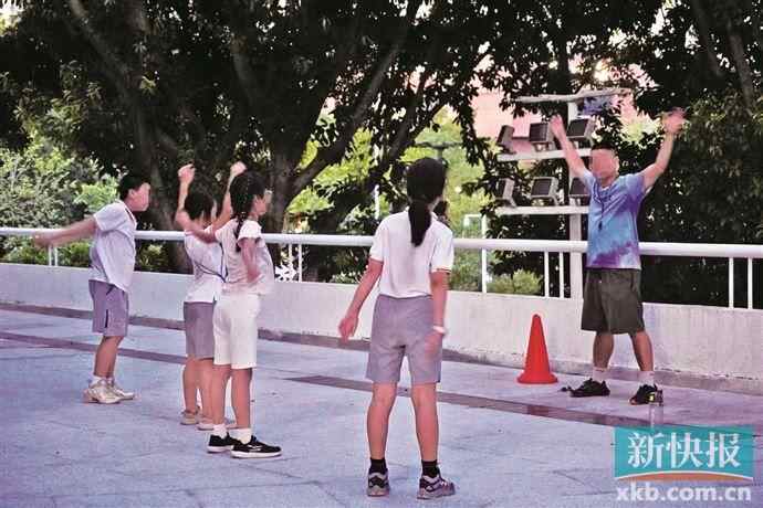 ■天河体育中心内,“上门教练”带着四名孩子拉伸。 金瑜/摄