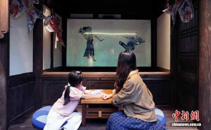 10月2日,四川成都,游客在杜甫草堂“广厦十二间”手工艺文创市集里观看皮影戏。中新社记者 安源 摄
