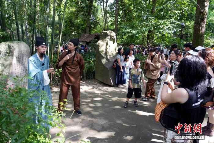 10月2日,四川成都,游客在杜甫草堂观看情景剧演出。中新社记者 安源 摄