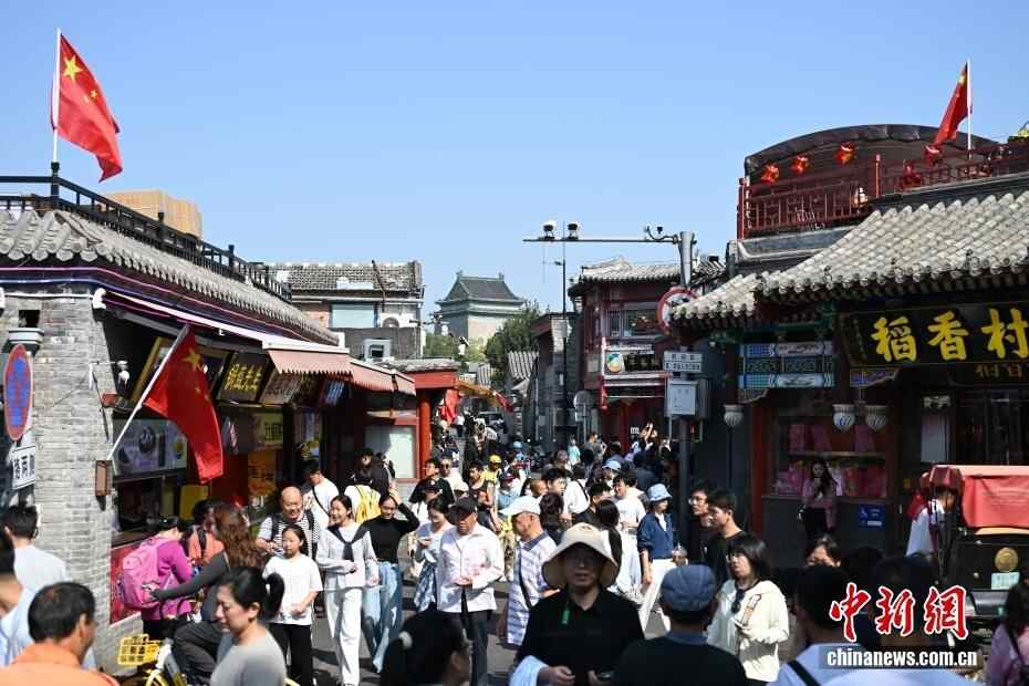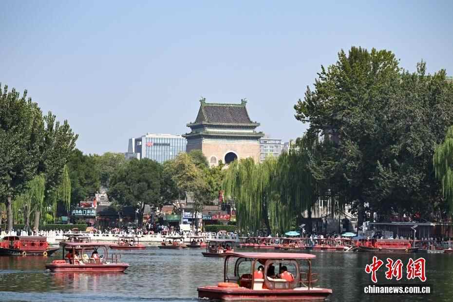 10月2日,游客在什刹海景区游览。当日是国庆假期第二天,北京多个景区游人如织。