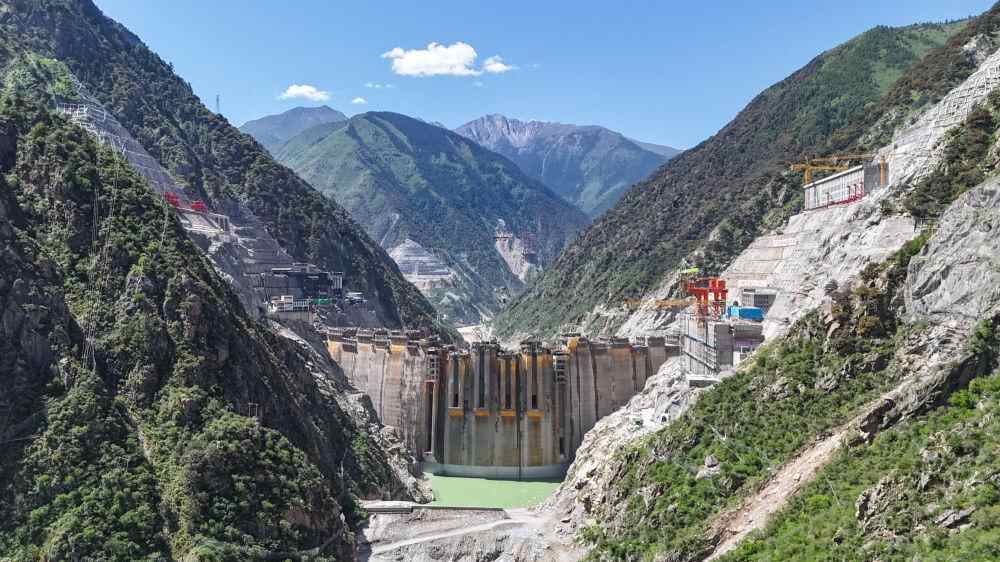 在海拔3000多米的金沙江上游,叶巴滩水电站的建设现场同样是一片繁忙。作为我国在建海拔最高的双曲拱坝电站,这里正迎来了首批坝段浇筑到顶的关键节点。电站大坝高达217米,预计年底全线封顶。
