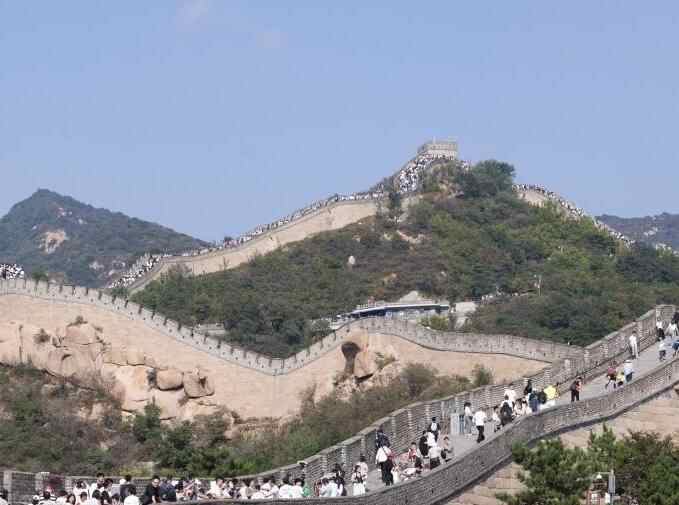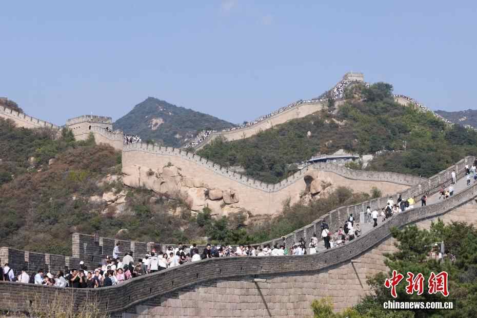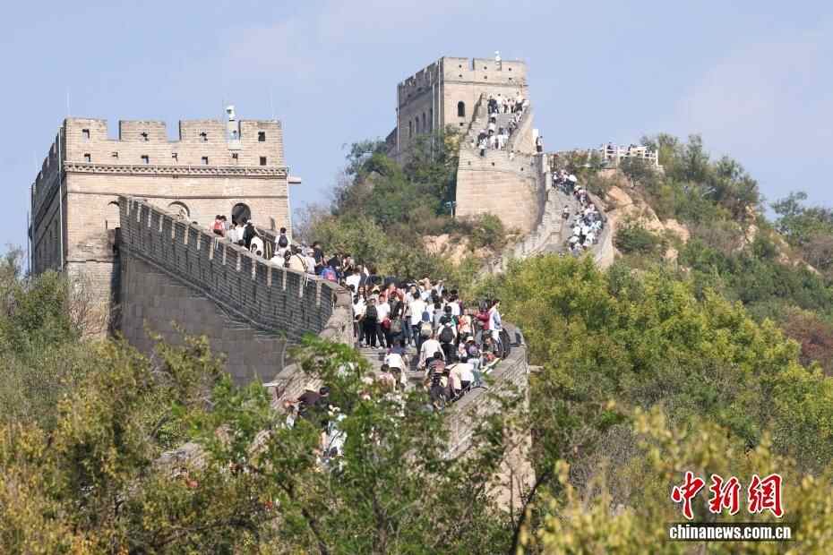 10月2日,国庆中秋假期第二天,北京八达岭长城景区人气旺。
