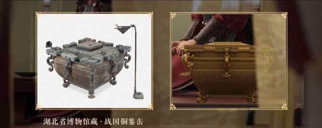 比如,电影里出现的装酒容器冰鉴,设计上参考了湖北省博物馆的铜鉴缶;