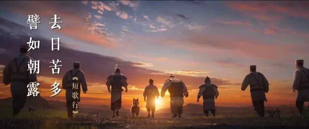 这些课本里熟悉的诗词,也作为台词出现在了《三国的星空第一部》里。电影里,曹操行至碣石山时,登山望海,吟诵起《观沧海》,抱负满怀,壮阔豪迈;而在纪念阵亡将士时,曹操则吟诵起“譬如朝露,去日苦多”,忧愤深沉……