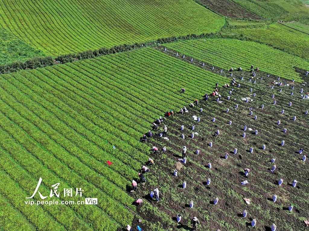 近日,正值甘肃省定西市岷县山区各类中药材种苗进入收获季,当地农民抢抓晴好天气加紧采挖。刘辉摄(人民图片网)