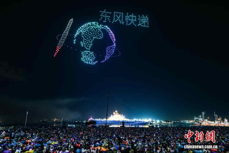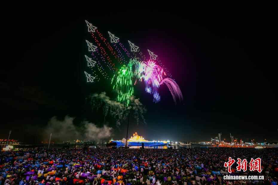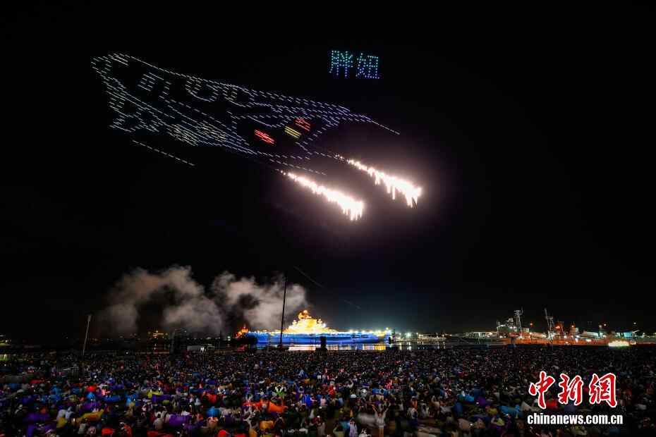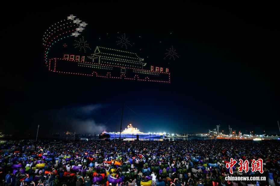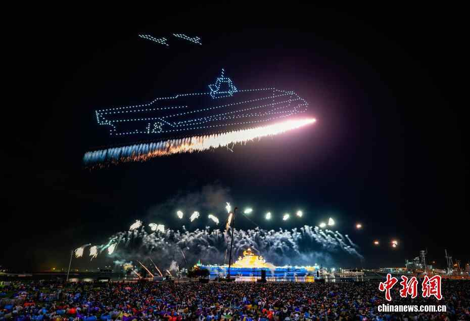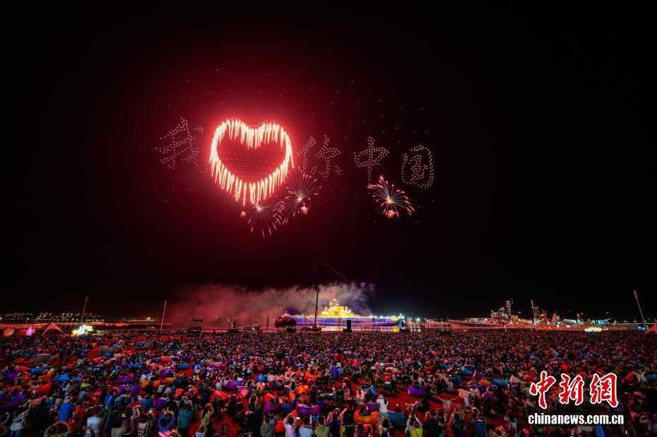 天津:航母公园无人机焰火秀点亮国庆假期夜空