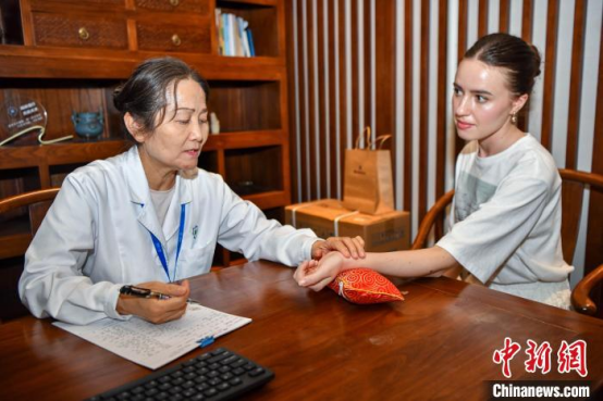 图为俄罗斯游客在博鳌一龄生命养护中心体验中医就诊。骆云飞 摄