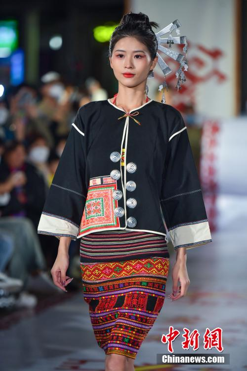 海南黎族传统织锦技艺焕发新生,走上国际舞台,图为模特展示黎锦服饰。骆云飞 摄