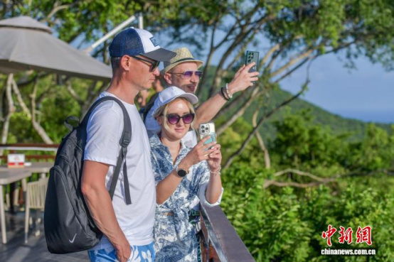 外籍游客在三亚鹿回头风景区游玩。骆云飞 摄