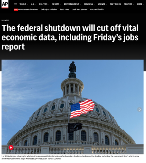 △美联社报道,政府停摆将导致经济数据发布中断,这对美联储的相关决策构成了极大挑战