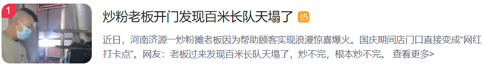 近日,河南济源一炒粉摊老板因为帮助顾客实现浪漫惊喜爆火,冲上热搜第一。