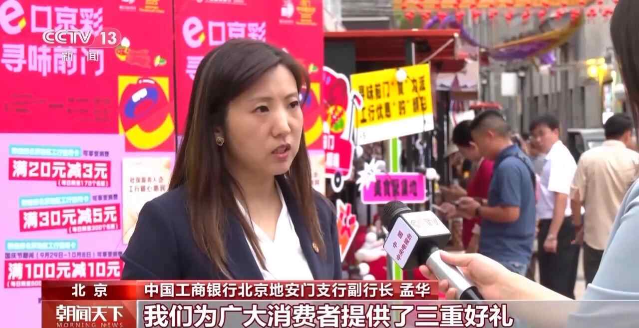 中国工商银行北京地安门支行副行长 孟华:我们为广大消费者提供了三重好礼,除了传统的消费满减活动以外,我们还叠加了数字人民币的优惠支付,同时还设计了数字人民币的打卡活动。